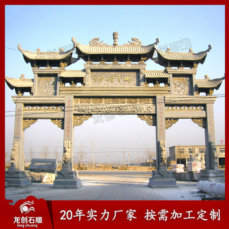 現在國家非常重視鄉鎮的建設,推進新農村建設及民俗特色小鎮的推廣等等,因此一些具有地方性特色的建筑都被很好的應用,如村口石雕牌坊就是其中的一種。隨著社會的發展現在鄉鎮路口石雕牌坊款式也越來越多,那么常見的三門樣式都有哪些?