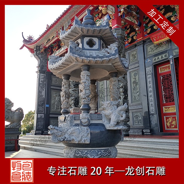 適用場(chǎng)景:花崗巖石雕香爐常用于大型寺廟、佛堂等場(chǎng)合,其堅(jiān)固耐用的特性能夠經(jīng)受住風(fēng)吹雨打,歷久彌新。