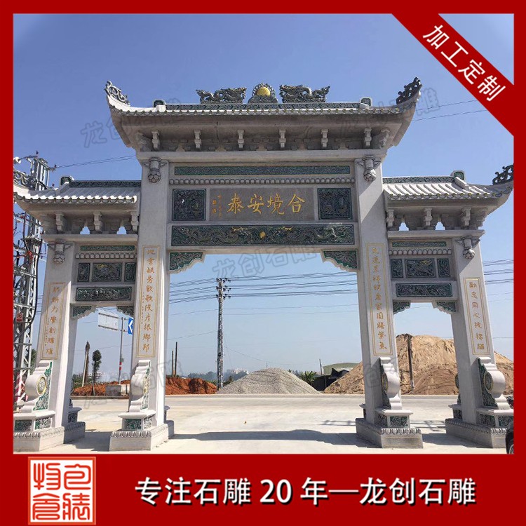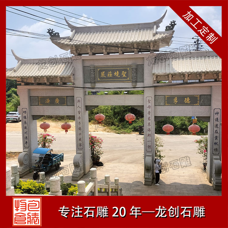 明確用途與風(fēng)格:首先要明確牌坊的用途,是用于村口標(biāo)識(shí)、景區(qū)裝飾,還是寺廟道觀的莊重點(diǎn)綴。不同用途決定了風(fēng)格的選擇。如村口牌坊宜大氣磅礴,展現(xiàn)村莊風(fēng)貌;景區(qū)牌坊可融入地域特色,與周邊景觀協(xié)調(diào);寺廟道觀牌坊則需莊嚴(yán)肅穆,體現(xiàn)宗教文化。