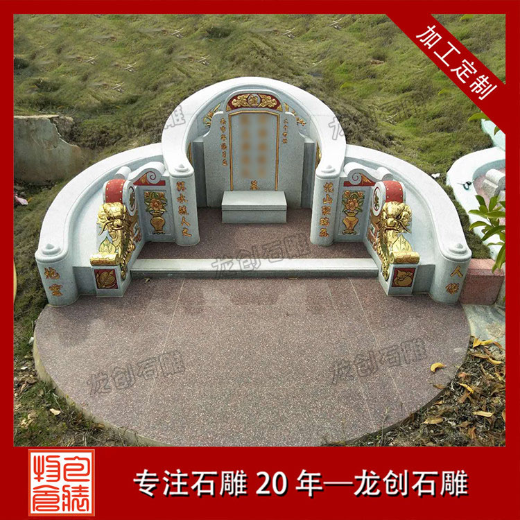 設(shè)計方面,融入豐富文化元素。雕刻圖案是重要一環(huán),龍鳳象征尊貴吉祥,常用于家族顯赫者的墓地;蓮花代表純潔超脫,在許多墓地都能見到;二十四孝圖則傳遞著孝道文化。造型上,傳統(tǒng)中式以飛檐、斗拱元素體現(xiàn)莊重;現(xiàn)代簡約風(fēng)格用流暢線條展現(xiàn)簡潔大氣。