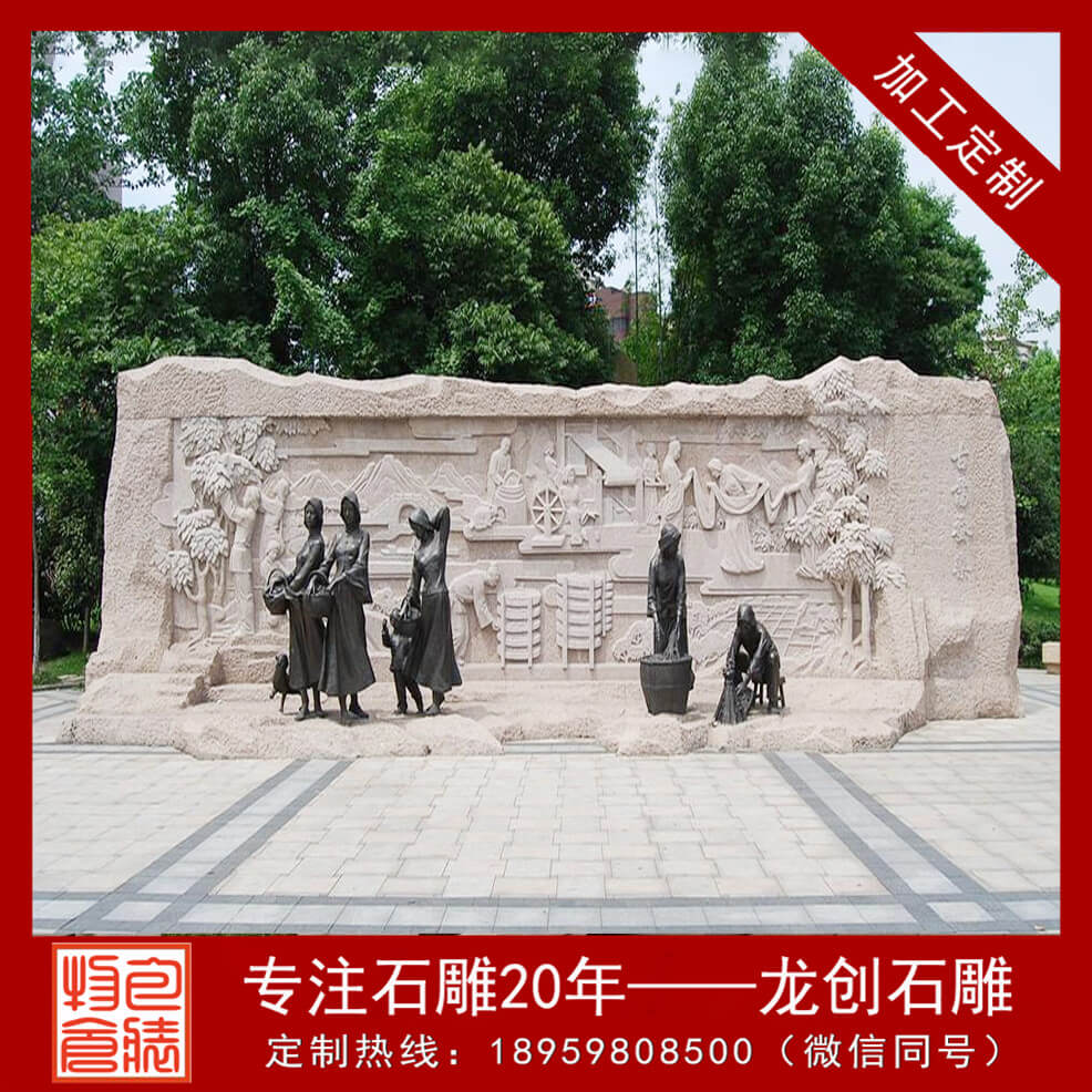 關于大型浮雕制作,它的美在于它是一種特殊的雕塑,是一種在平面上進行雕塑制作出帶有凹凸感崎嶇形象的一種特別的雕塑,它的特征在于雖然是在平面上描寫的,可是它的美帶給人的不關是視覺上的還有觸覺上的,是一種兩層享用。從藝術鑒賞的視點來看,浮雕墻制作將繪畫與圓雕彼此交融,取其精華取其糟粕,把繪畫中關于構圖以及空間處理、意境描繪的優勢發揮的酣暢淋漓,這樣就彌補了圓雕無法表現出內容、環境等具有連續性和雜亂多變的場景的缺點。可以很輕松的在一面墻上通過浮雕墻像咱們展現一個故事,通過雜亂多元的事物之間彼此堆疊穿插將創作者所要表達的思想向咱們進行詳細的傳達。