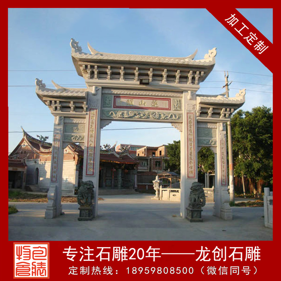 在建造中石牌坊是常常會用到,展現一個地區建造的風采和相貌,這對牌坊的款式選擇是比較考究的。石牌坊的造型和標準許多,比如典型的有單門牌坊、三門牌坊以及五門牌坊,從款式上看,有不出頭牌坊和沖天式牌坊,依據地域的運用不同,石牌坊的造型規劃也會有很大的不同,在選擇的時分可以先考慮到當地的文化和風土人情等,保證可以雕琢出更為精致的石牌坊著作。石牌坊制作,石牌坊廠家應認準龍創石雕。龍創石雕歡迎您的致電!