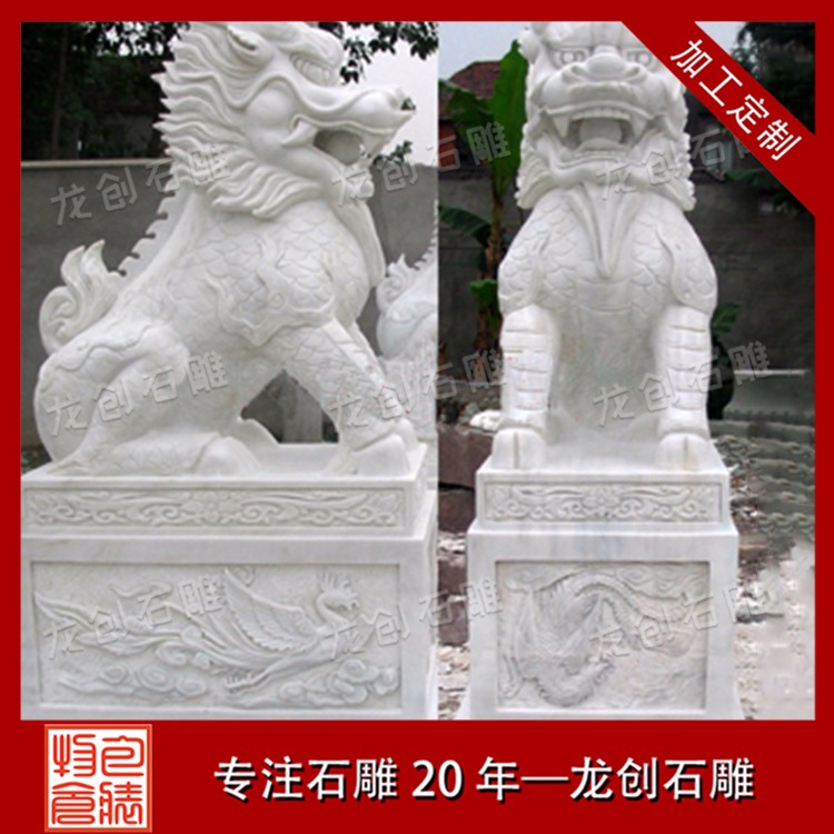 麒麟本身是具有集大成寓意的瑞獸,在民間被廣泛推崇。以麒麟為形態(tài)打造的石雕麒麟,可用于造景、點綴空間、祈福、轉運等等。漢白玉制作的麒麟石雕,不僅可以實現(xiàn)麒麟的美好寓意,而且在開光之后,更具有鎮(zhèn)宅、化煞、祈福、招財?shù)撵`力。所以,一對麒麟石雕既可以放置在商業(yè)大樓正門,也可以擺放在住宅區(qū)、別墅區(qū)的正門。風景區(qū)、陵園區(qū)、寺院道觀等,擺放麒麟可以帶來吉祥寓意的風水作用,保佑來玩的人群,鎮(zhèn)宅辟邪。漢白玉石雕麒麟開光,可以以日月光洗禮,吸收日月精華來開啟麒麟石雕的靈性,也可以請寺廟大師念經(jīng)開光。