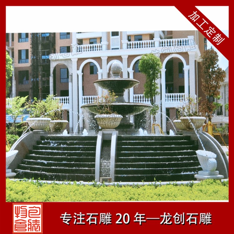園林景觀石雕噴泉水缽雕塑是一自然景觀,受到水的壓力向上噴,又往下降落,行成噴泉水景。人們認為噴泉源于古希臘飲用泉,后來發展成與神像雕塑相結合的石雕噴泉雕塑和裝飾性噴泉景觀,還有的認為是來自西班牙的沐浴泉,中式園林中的噴泉多為跌水、涌泉‘滾水等自然式噴泉,在廣場,展會會館,酒店飯店門口則是以圓形噴泉為主,一般是雙層及以上噴泉水缽雕塑,需要展示噴泉景觀的美與華麗。