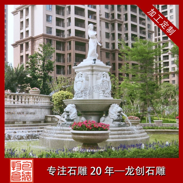 現代風格的石雕噴泉雕塑大部分都是以科技和現代元素為主,搭配光線打造不同色彩的視線,給人一種很夢幻的抽象景象。歐式石雕噴泉雕塑也是現代非常深受人們喜愛的一種石雕噴泉雕塑風格,一般以歐式藝術人物、歐式藝術線條、歐式裝飾藝術形態等來體現,而這些搭配往往決定這石雕噴泉雕塑的檔次、品位和設計理念。