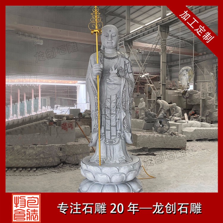 石雕地藏王菩薩圖片形象一般菩薩為頭戴寶冠、身披天衣、瓔珞裝飾的天人相。而地藏菩薩則多為光頭或是頭戴毗盧冠,身披袈裟的出家人之相。一手持錫杖,一手持蓮花,或是手持幡幢、寶珠等。石雕地藏王菩薩價格會根據(jù)材質(zhì)、尺寸和雕刻工藝的變化而變化,具體的價格多少錢,歡迎來電咨詢。