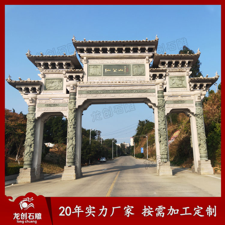 寺廟青石牌坊樣式圖片有一門、三門、五門等,其中有一門一樓、三門三樓、三門五樓等,這些石牌坊是常用的幾種款式,價格也不貴,是消費者較為喜歡的幾種樣式的石牌坊。不同大小的石牌坊價格也不同,石牌坊樣式和規格大小不同,石牌坊價格也不一樣。不同石材,價格也不同。