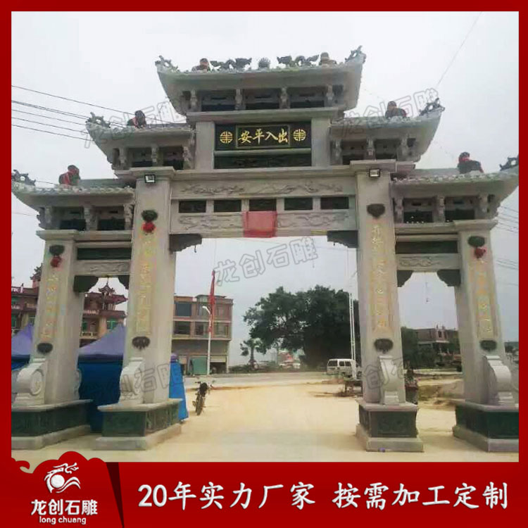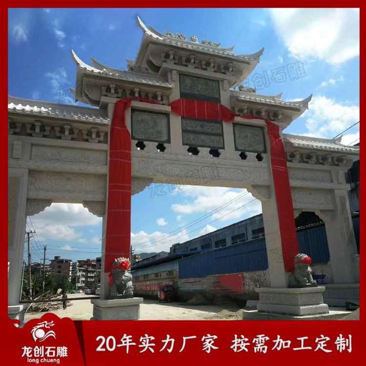 在生活中大型石雕牌坊制作安裝的場(chǎng)所挺多的,在新農(nóng)村、風(fēng)景區(qū)、寺院等地方都開始慢慢地建造大型石雕牌坊了。大型石雕牌坊在制作上采用了多樣化的雕刻工藝,雕刻制作出許多細(xì)致精湛的圖案,讓其與環(huán)境相互輝映,更具樸素質(zhì)感貼近大自然。