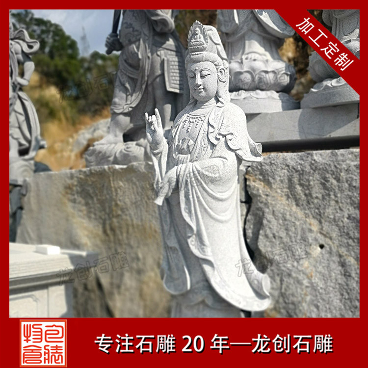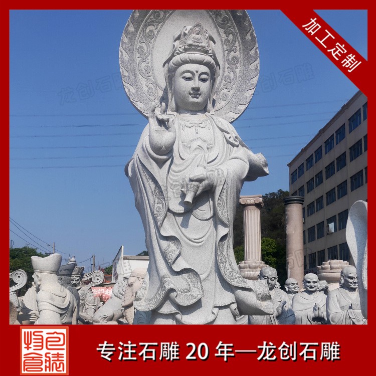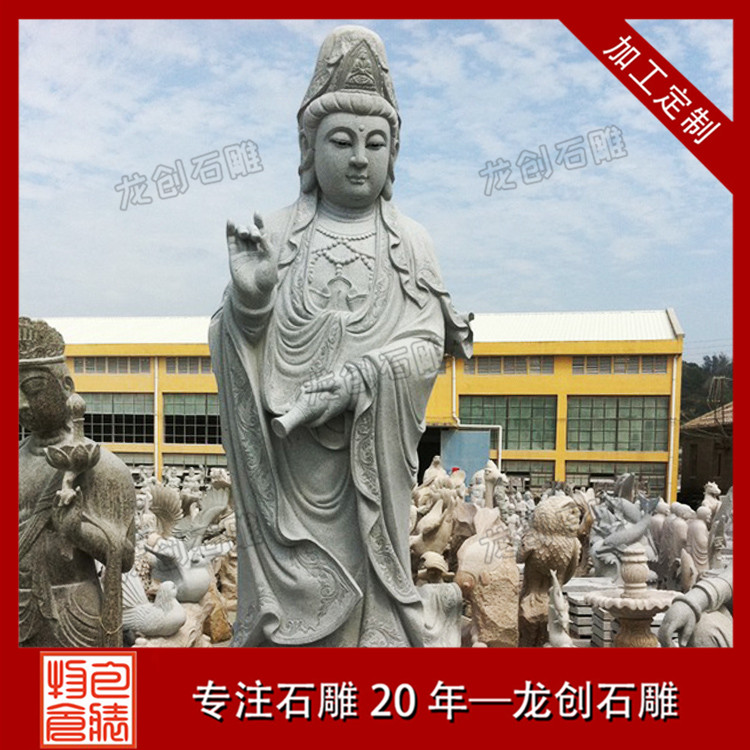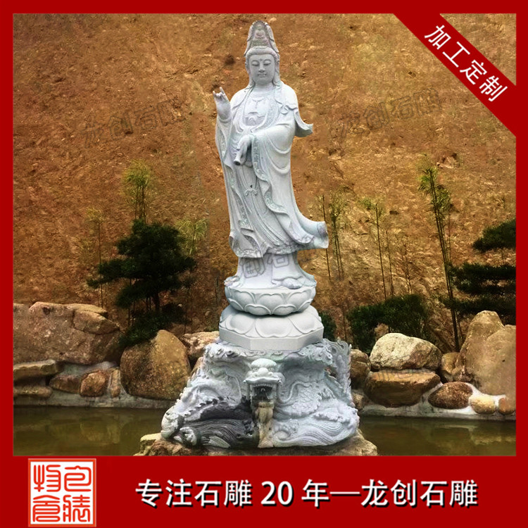 石雕滴水觀音造型可以是站姿,也可以是坐姿,雖然滴水觀音的造型很經典,但其身上的背光、圓光、瓔珞等這些都是可以另外定制的,只是不同的樣式在價格上有差別。石雕滴水觀音生產廠家,選惠安龍創石雕。