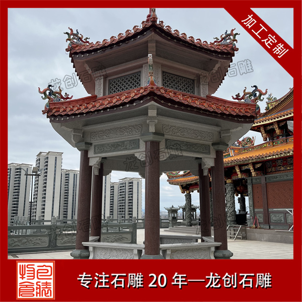 在實際應用中,六角涼亭適合置于庭院中心、水岸平臺或景觀軸線的節點位置。常見尺寸為檐口直徑3-4.5米,地面至寶頂高度4-6米。選購時應重點關注石材的質地均勻度、構件加工精度及結構安全性,確保各連接部位結合緊密。安裝時需做好基礎墊層,采用預埋件與亭體可靠連接。合理的亭體設計與布局能形成良好的觀景視野,為園林空間增添富有傳統文化韻味的休憩場所。
