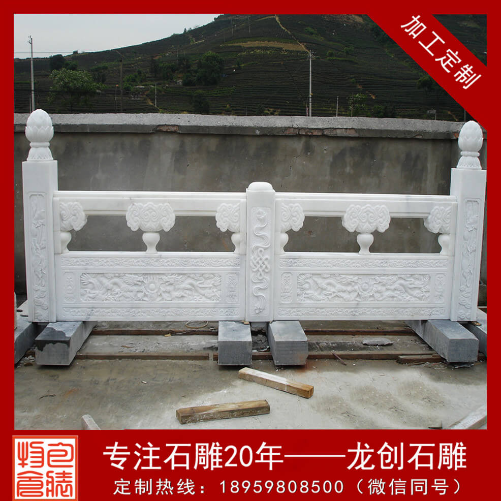 石雕欄桿一般出現(xiàn)在古建筑大殿周圍、橋面、路面上,起到維護行人安全外,石雕欄桿還可裝修環(huán)境,又能豐富人們的活,熏陶人的情趣,給人以美的享受。漢白玉石雕欄桿的構成石雕欄桿有柱頭、立柱、扶手、花托、欄板、地鋪幾部分組成。透空的帶花格或圖畫的實心欄桿,也有實心的欄板部分透空或悉數(shù)不透空的欄桿。