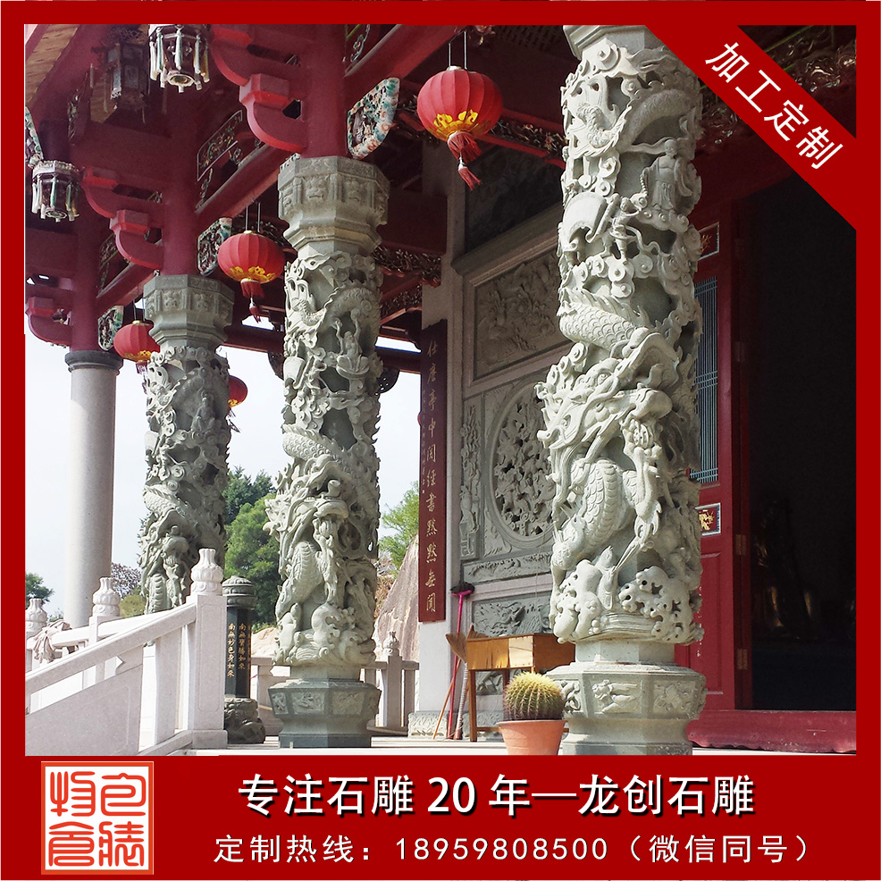 惠安石雕龍柱的雕琢是行業(yè)內的龍頭,千年的石雕文化積聚及日以精深的雕琢技藝使得惠安石雕在國內外都很有名。石雕龍柱素有祥瑞、富貴、老實守信等意,是寺院、道觀、宗祠、公司、園林等常見之柱,立在公園或景區(qū)廣場路邊等,可以成為獨樹一幟的景觀來欣賞。石雕龍柱的價錢普通依據其材質的不同、外型的不同、尺寸大小的不同及工藝復雜水平的不同,價錢區(qū)間普通在20000元左右每根。