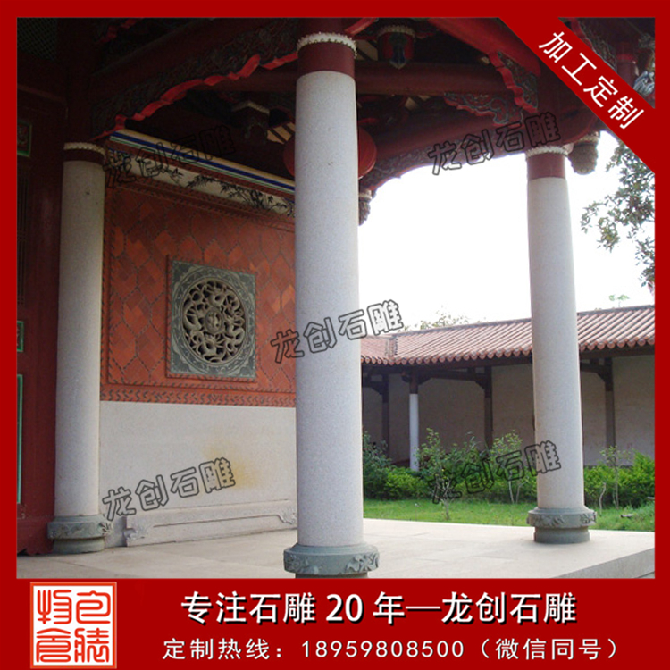 普通石雕圓柱主要是指母線是直線、曲線,但橫截面是圓的等截面或不等截面的圓柱,如等直徑圓柱、錐形圓柱、兩頭直徑小于中間直徑的鼓形圓柱和欄桿柱等。