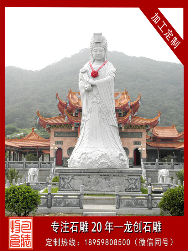 媽祖石雕,以中國東南沿海為中心的海神信仰,又稱天上圣母、天后、天后娘娘、天妃、天妃娘娘、湄洲娘媽等。這一信仰的主體據說是由真人真事演變而來的??疾鞁屪娴纳降弥?,這一信仰來自民間傳說。首先是傳說,然后是傳說的歷史化和神化,最后形成普遍的媽祖信仰。