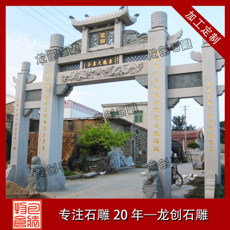 石牌樓是我國建筑中的藝術(shù)代表,集中展示了我國雕刻文化,也能夠探索到不同歷史時期的故事。石牌樓如今建造應(yīng)用多,尤其在新農(nóng)村村口石牌樓設(shè)計制作及選購中,因為修建石牌樓是為了彰顯新農(nóng)村面貌,不少新農(nóng)村建設(shè)也都會作為重點設(shè)計考慮。那么新農(nóng)村村口石牌樓設(shè)計制作及選購有哪些注意事項? 下面由村口石牌樓廠家,龍創(chuàng)石雕為大家介紹。