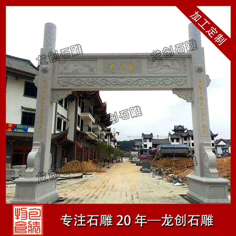 村門牌坊雕刻是一個村莊的門面,同時也具有裝飾的作用,有些道路比較窄,那就要選擇農(nóng)村簡易門樓牌坊,一般也被稱為單門牌坊。牌坊并不是越大越好,只有適合的才是好的。